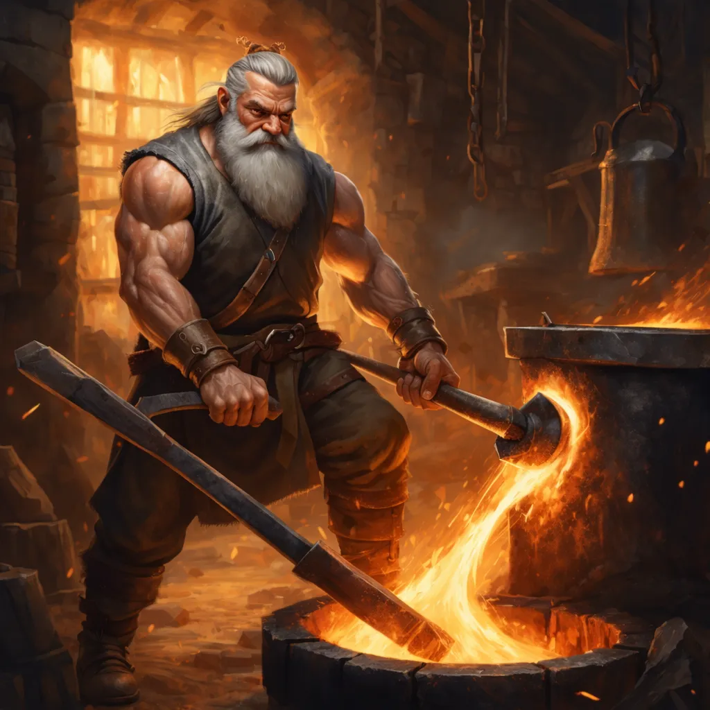 This mesmerizing image 'A male blacksmith' is brimming with mystery, beauty, and intrigue, eagerly awaiting the touch of your pen to give it life. Let your creativity run wild as you delve into the depths of this visual masterpiece and uncover the hidden stories within.