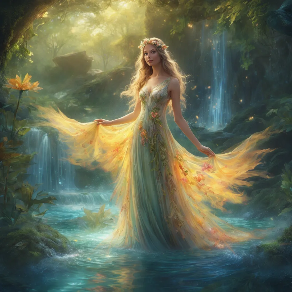 This mesmerizing image 'A girl standing in a forest stream' is brimming with mystery, beauty, and intrigue, eagerly awaiting the touch of your pen to give it life. Let your creativity run wild as you delve into the depths of this visual masterpiece and uncover the hidden stories within.