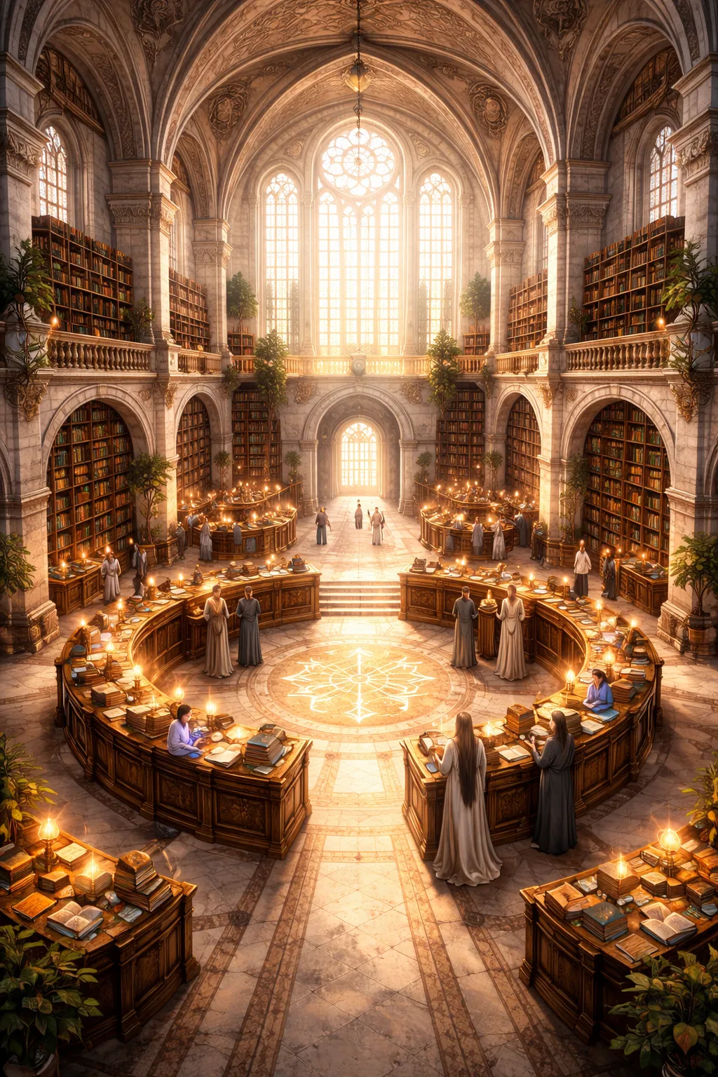 This mesmerizing image 'The Great Library of the Magisterium' is brimming with mystery, beauty, and intrigue, eagerly awaiting the touch of your pen to give it life. Let your creativity run wild as you delve into the depths of this visual masterpiece and uncover the hidden stories within.