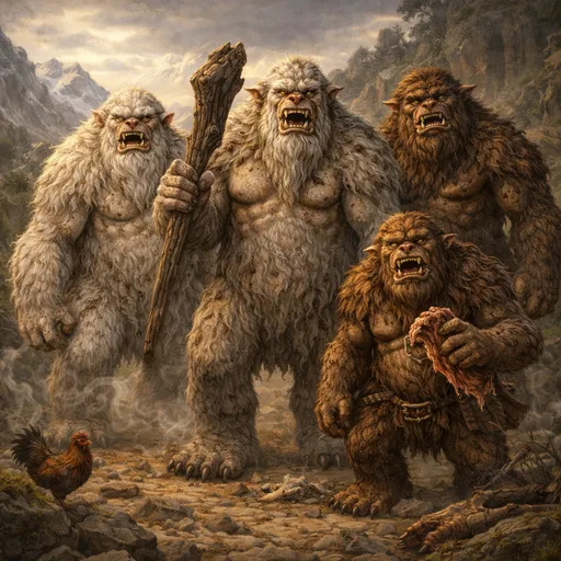 Trolls are large, muscular, furry humanoids measuring between 2 and 3 metres tall. They have developed a reputation for being aggressive, dumb and always being hungry. There are two types of troll in the game, Mountain trolls and Wood trolls. Most of the bad reputation comes from mountain trolls and as a result the more placid wood trolls suffer from this. There are no major physical differences except mountain trolls tend to have white fur, and lots of it. To most other races a troll is still a troll no-matter where they come from and trolls are seen as scavengers and looters. Many farms bordering Troll inhabited areas do get raided, but this is usually because the Troll population are starving. In reality troll society has a very distinct social system with its own strict regulations and customs. Generally Trolls will keep themselves to themselves.